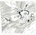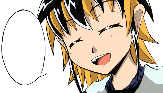 読み切りのヒロイン・ユイナ(モノクロ)。
